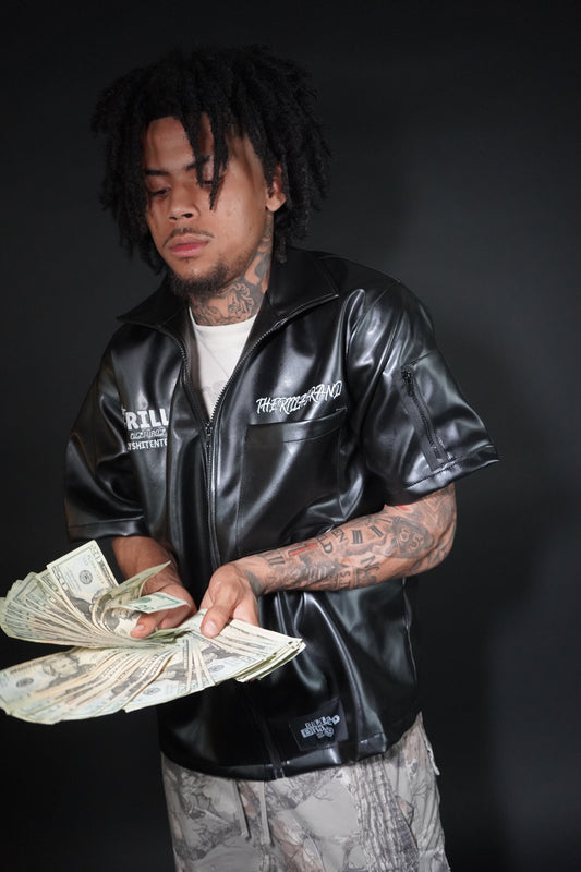Cropped Black Leather Zip
